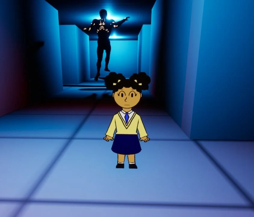 Once the blockout was finished, I started to get to work on the rest of the level, populating it with props that would be found in a school. Desks, lockers, and more while making sure they wouldn’t collide with “IT” and his patrol path. The lighting was also turned moody to enhance the atmosphere, and all lighting is strictly placed on the ceiling to mimic fluorescent lights in a school hallway. One mechanic I added was being able to hide in lockers from “IT”. I also got help from an artist, an SFX designer, and a composer to create assets and enrich the presentation. The end product resulted in this: